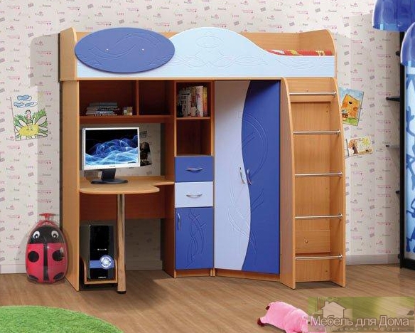 Дополнительные характеристики:— Стол: Да.— Стандартная лестница: Да. — Ступеньки: Да. — Количество спальных мест: 1. — Материал изготовления фасада: МДФ пленочный. — Максимальная нагрузка на спальное место: 80 кг. — Стеллаж для книг и игрушек: Да. — Защитный бортик: Да. — Основание спального места: ламинированная ДСП.— Вид кровати: стол-кровать. — Шкаф-пенал: Да. — Выдвижной ящик: 2 шт.— Материал изготовления каркаса: ДСП ламинированная.