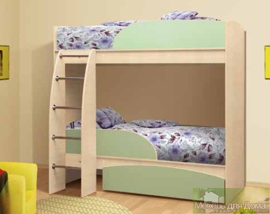 2 спальных места 800×1900, выкатной ящик, шкаф для платья и белья. Конструктивно позволяет установить любой стандартный (и ортопедический) матрац.Собирается на любую сторону.