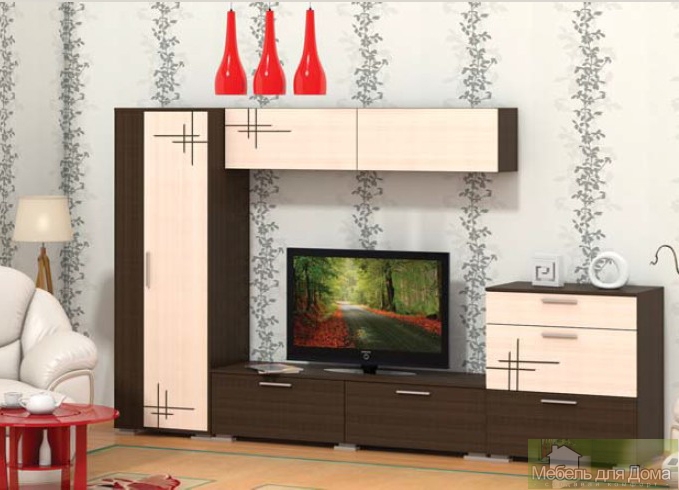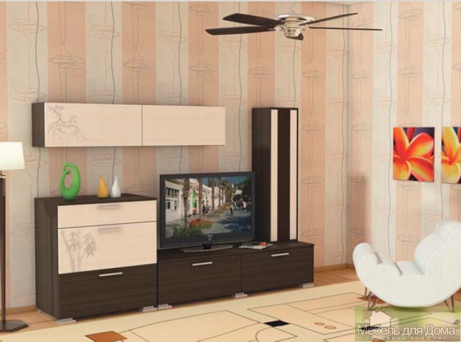Модульная мебель для гостиной «Киото» состоит из 8 модулей, которые могут быть как с рисунком так и без рисунка на фасаде.