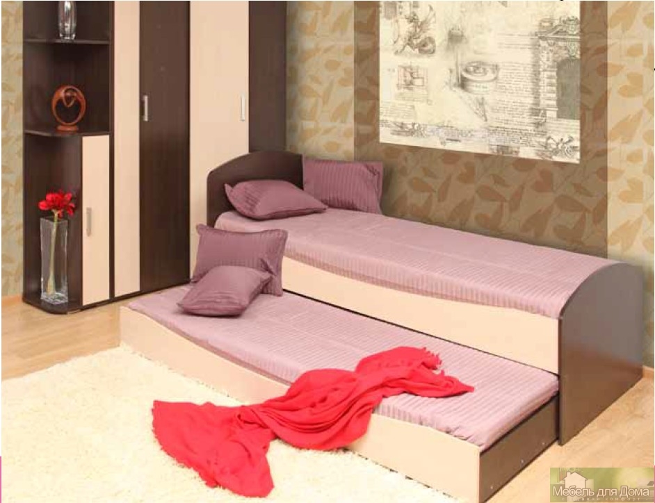 Односпальная кровать, размеры спального места 900×2000 мм. Выдвижной ящик может быть использован для организации второго спального места или для хранения белья.